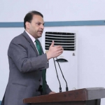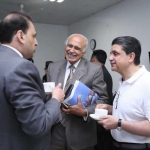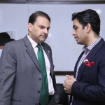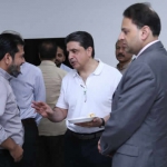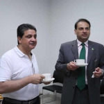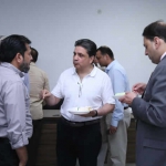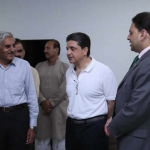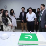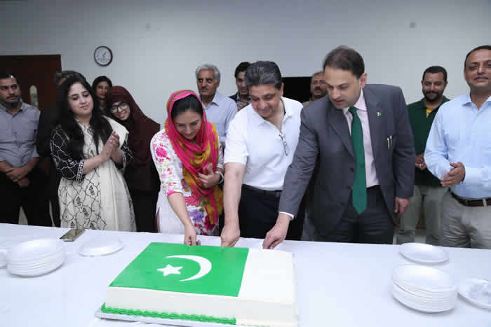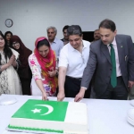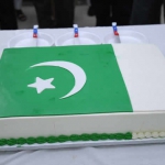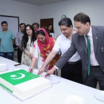 Mr. Iqbal Salahuddin, grandson of Dr. Allama Muhammad Iqbal and Mr. Khalid Sherdil, CEO – Punjab Saaf Pani Company – North cutting a cake in connection with celebrations to mark the 70th Independence Day of Pakistan. The ceremony was preceded by a lecture on ideology of Dr. Allama Muhammad Iqbal.