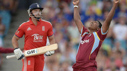 West Indies teame“I just try to vary the pace, and it worked on this occasion,” said Santokie. “I just stick to the basics and just seek to improve every time I get the opportunity to play.” In contrast to their opponents, Dwayne Smith (30) and Chris Gayle (36) gave the West Indies a flying start, and although both failed to carry on to the end, their rate of scoring eased the burden on the batsmen who followed. Ravi Bopara´s medium-pace – he conceded just ten runs from four overs for Gayle´s wicket – and James Tredwell´s left-arm spin gave England hope of a fightback while Tim Bresnan´s double-strike in removing Marlon Samuels and Andre Russell off successive balls in the 17th over lifted the prospect of a tight finish. However Sammy, in partnership with Dwayne Bravo, killed off England´s chances and allowed the home fans in another full-house at Kensington to savour the rarity in recent times of a West Indies series victory.  Thenews