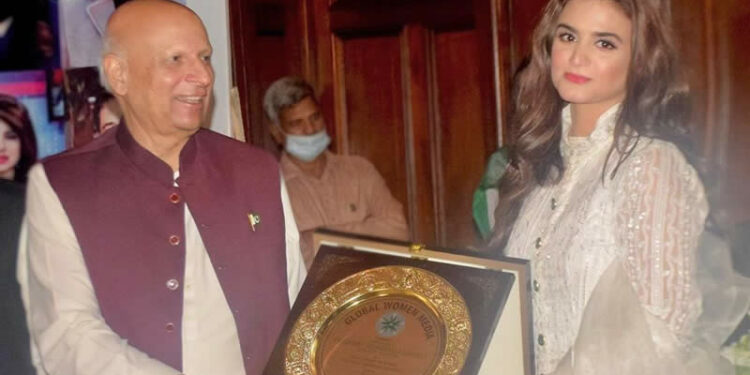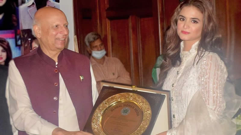 TV actress Hira Mani has received the Global Woman Media Award from Punjab Governor, Chaudhary Mohammad Sarvar. She was awarded for her contribution to the Pakistani media industry.