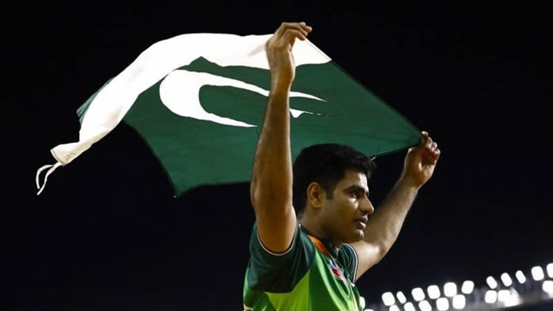 Pakistani athlete’s stunning 92.97 metres earns him gold and an Olympic Record, making him a national hero