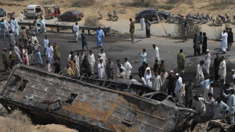 According to police sources, the ill-fated bus was en route to Karachi from Quetta.